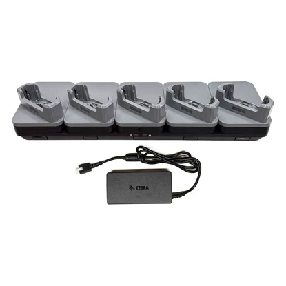 Zebra charging-/communication station, 5 slots, ethernet e’ un accessorio originale Zebra progettato per massimizzare l’efficienza operativa con i terminali mobili Zebra TC501.
