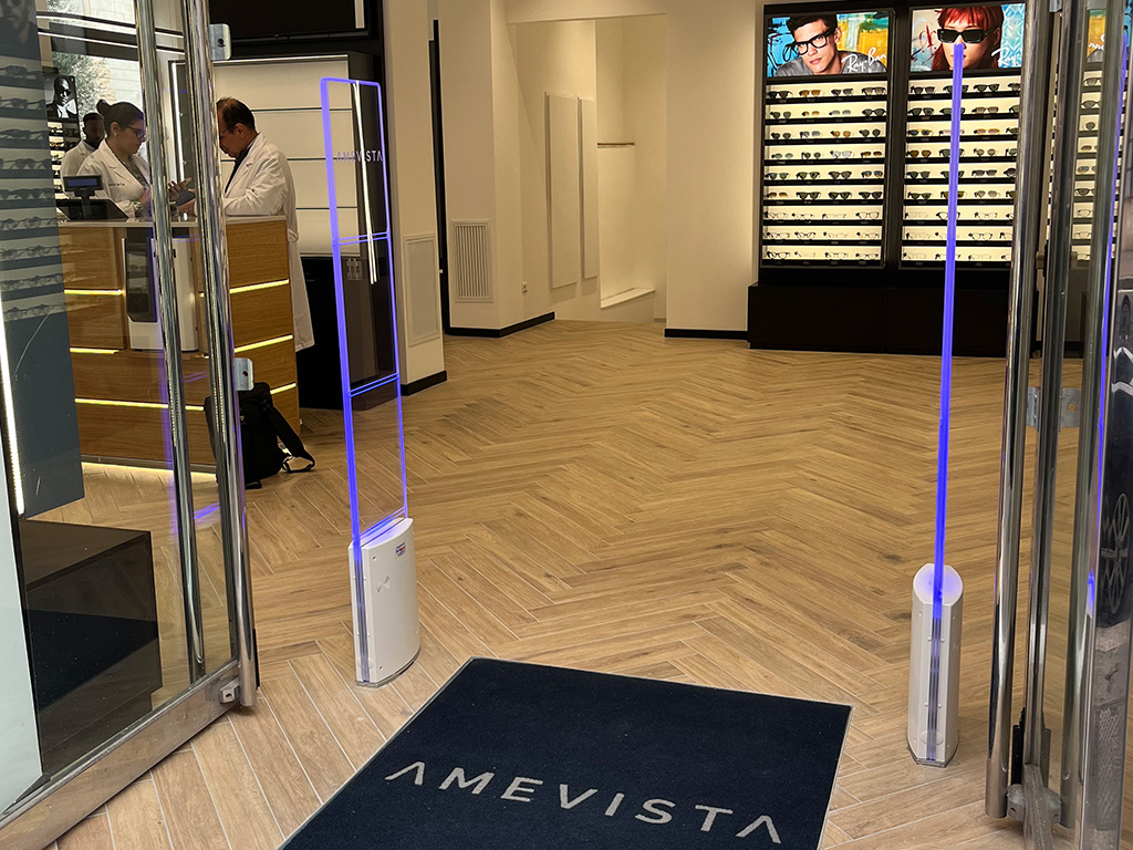 Si tratta della tecnologia più diffusa nel retail. I sistemi RF utilizzano onde radio per creare un’area di controllo all’interno della quale le etichette o placche antitaccheggio vengono rilevate dalle antenne posizionate all’uscita del negozio.